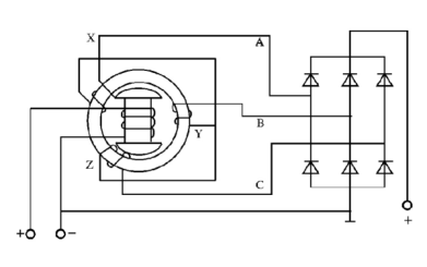 圖A 硅整流發(fā)電機(jī)工作原理