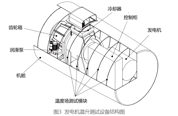 發(fā)電機(jī)組的溫升是指某一點(diǎn)的溫度和參數(shù)溫升之差,其設(shè)備外形如圖1所示。發(fā)電機(jī)組溫升是指發(fā)電機(jī)某部件和周圍冷卻介質(zhì)溫度的差別。溫升過高,則表示發(fā)電機(jī)有故障。也就是說,發(fā)電機(jī)組上升的溫度中超過周圍空氣的溫度的這一部分溫度稱為溫升,溫升的單位為K。在國家標(biāo)準(zhǔn),旋轉(zhuǎn)電機(jī)定額和性能中明確規(guī)定:發(fā)電機(jī)組在額定負(fù)載下長期運(yùn)行達(dá)到熱穩(wěn)定狀態(tài)時(shí),其極限溫度為130℃,考慮其風(fēng)冷器的出口溫度為40℃,則發(fā)電機(jī)組繞組的最大允許溫升為85K,但是在實(shí)際運(yùn)行中,由于減溫計(jì)可能存在一定的誤差,所以發(fā)電廠實(shí)際運(yùn)行中所控制的溫升為75K。在運(yùn)行過程中,同步發(fā)電機(jī)溫度或溫升過高的原因包括以下方面: