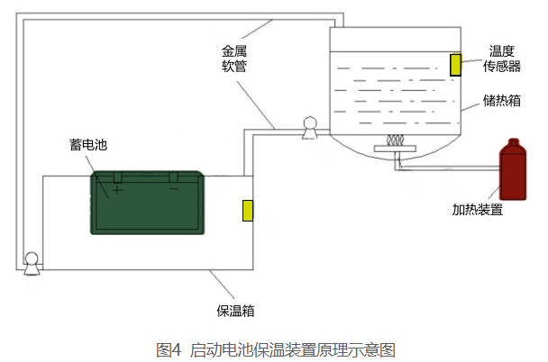 蓄電池保溫系統(tǒng)是柴油發(fā)電機預熱系統(tǒng)中的重要組成部分,結構如圖4所示。其核心功能是維持蓄電池在低溫環(huán)境下的適宜工作溫度,確保電池化學活性穩(wěn)定,從而保障啟動電力供應。以下是其詳細功能特點: