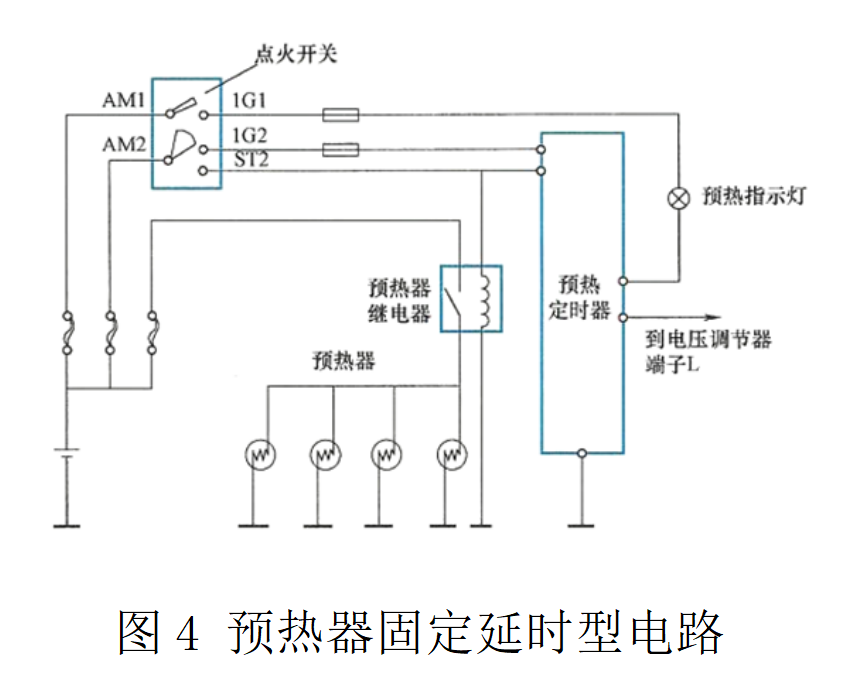 預(yù)熱系統(tǒng)的電路有兩種類型,即固定延時(shí)型電路和可變延時(shí)型電路。