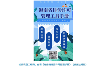 為幫助大家了解與排污許可管理制度相關的法規政策和技術規范的要求,做好常態化的排污許可證申領登記及日常管理工作,海南省生態環境廳編制了《海南省排污許可管理工具手冊》,共分為政策法規、管理名錄、技術體系、信息系統操作四個篇章,分類對排污許可管理制度進行詳細介紹,今天推出第一篇——政策法規篇,供排污單位和企業參考使用。